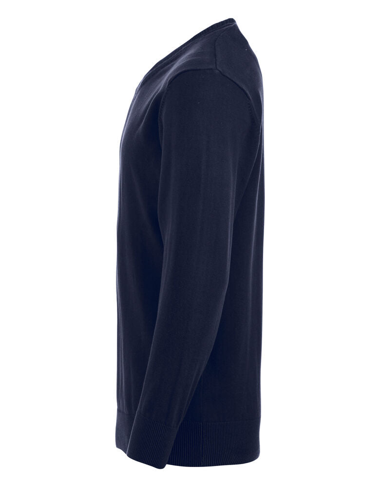 Ein hochwertiger Strickpullover mit V-Ausschnitt und spezieller Silikon-Behandlung für weichere Qualität. Elastan in Rippenbündchen an Ärmeln und unterem Bund. Waschbar bis 40°C.
