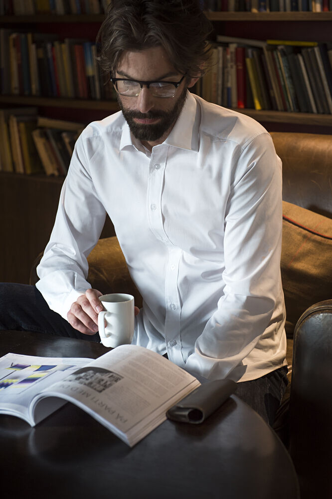 Bluse / Hemd mit Ton-in-Ton Knöpfen und getapten Nähten auf der Innenseite. Easy-Care Behandlung. Kann auch mit Manschettenknöpfen getragen werden. Waschbar bis 40°C.