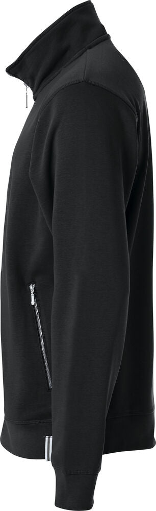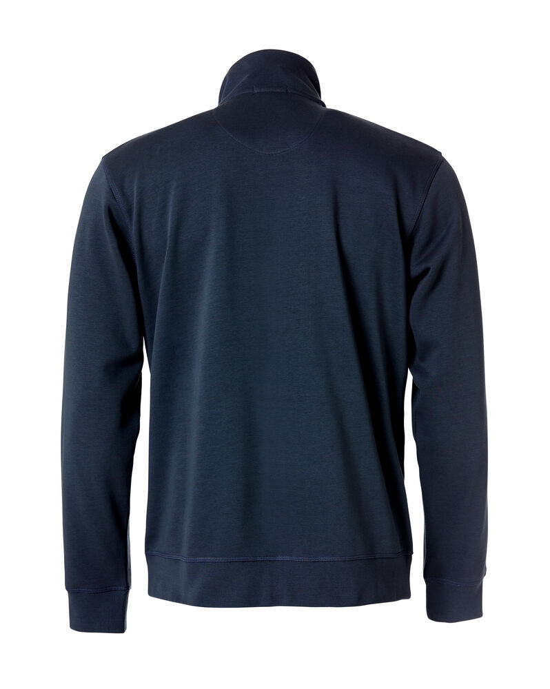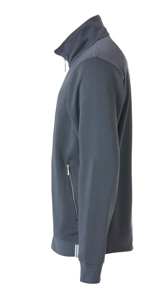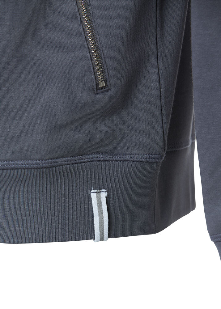 Sweatshirtjacke aus ungebürstetem Material. Praktische Details sind die Kopfhörerlösung und die seitlich angebrachten Taschen mit Reißverschlüssen. Die Ärmelabschlüsse und der Bund sind mit 2x2 Rip eingefasst. Ton-in-Ton Flachnähte und ein zweifarbig-gestreiftes Nackenband runden das Aussehen des Pullovers ab. Waschbar bis 60°C.