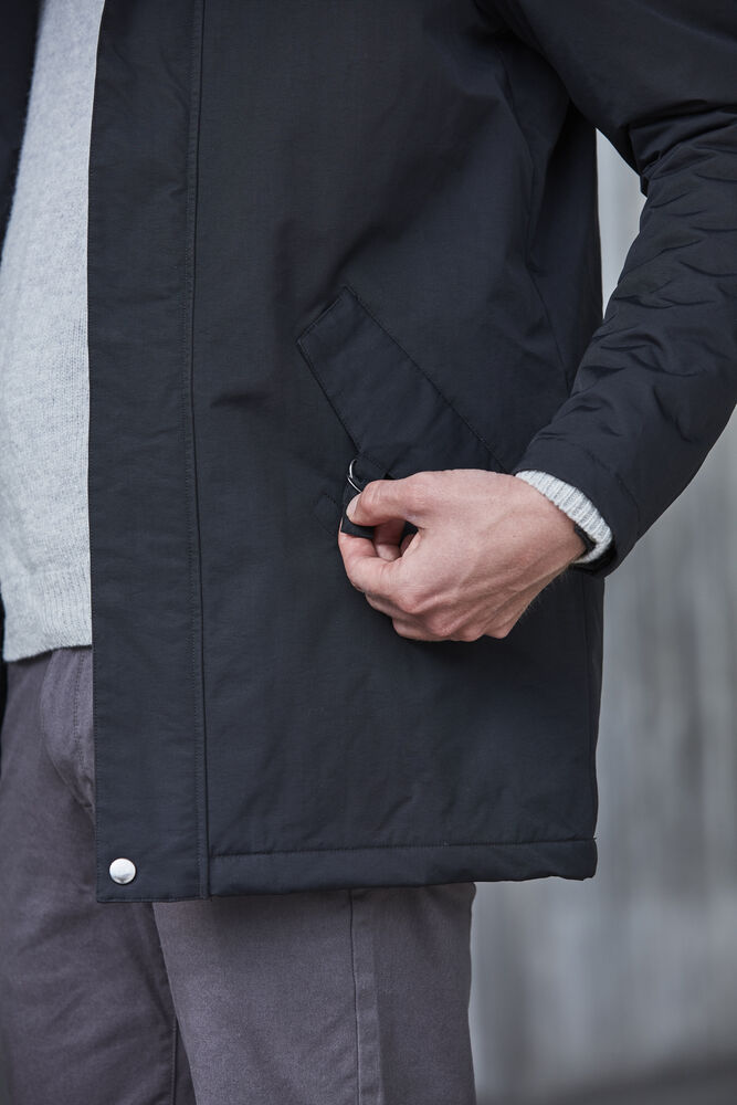 Wattierter Parka mit weichem Teddy-Futter in der Kapuze. Brusttasche mit Reißverschluss, 2 Fronttaschen mit Magneten und Innentasche mit Reißverschluss. Innen gesteppt und mit Kordelzug im Saum. Einstellbare Manschetten und Kopfhörerlösungen. Kopfhörer / Smartphone geeignet. Veredelungsreißverschluss. WP / MVP 5000 / 3000 mm.