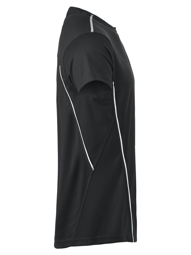 Unisex Funktionsshirt, abgerundeter Saum, Nackenband, hoher Tragekomfort durch fehlende Seitennähte, seitliche Kontrastpaspeln, Overlocknähte in Kontrastfarbe an den Schultern. Waschbar bis 40°C.