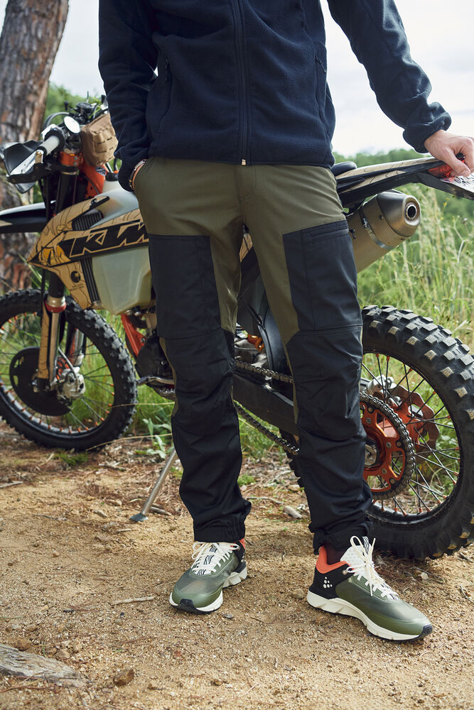 Eine moderne Trekkinghose mit komfortablem und atmungsaktivem 4-Wege-Stretch. Strapazierfähiges, wind- und wasserabweisendes Material in stark beanspruchten Bereichen. Gummizug in der Taille und vorgeformte Knie für bessere Bewegungsfreiheit. Zwei Vordertaschen, zwei Beintaschen mit Reißverschluss und eine auf der Rückseite. Verstellbarer Beinabschluss mit Gummizug und Klettverschluss. Option zum Einlegen von Knieschonern.