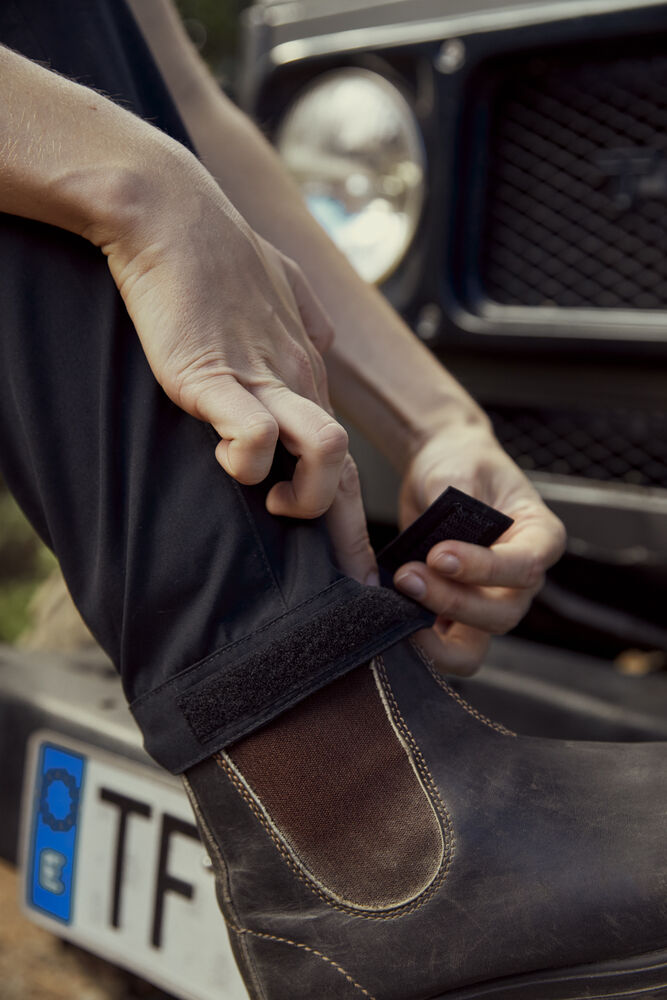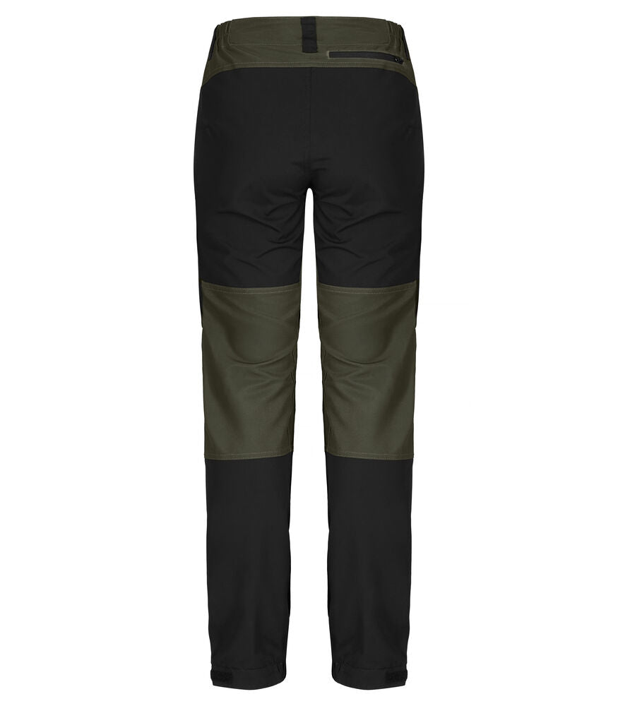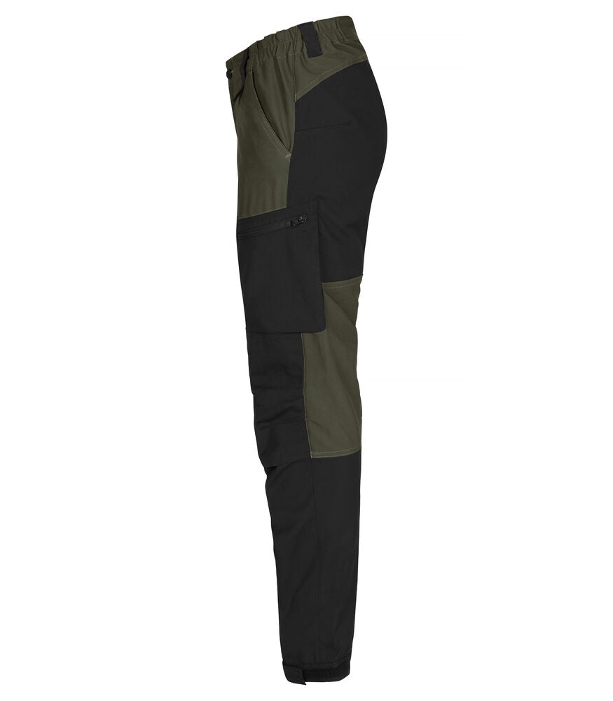 Eine moderne Trekkinghose mit komfortablem und atmungsaktivem 4-Wege-Stretch. Strapazierfähiges, wind- und wasserabweisendes Material in stark beanspruchten Bereichen. Gummizug in der Taille und vorgeformte Knie für bessere Bewegungsfreiheit. Zwei Vordertaschen, zwei Beintaschen mit Reißverschluss und eine auf der Rückseite. Verstellbarer Beinabschluss mit Gummizug und Klettverschluss. Option zum Einlegen von Knieschonern.