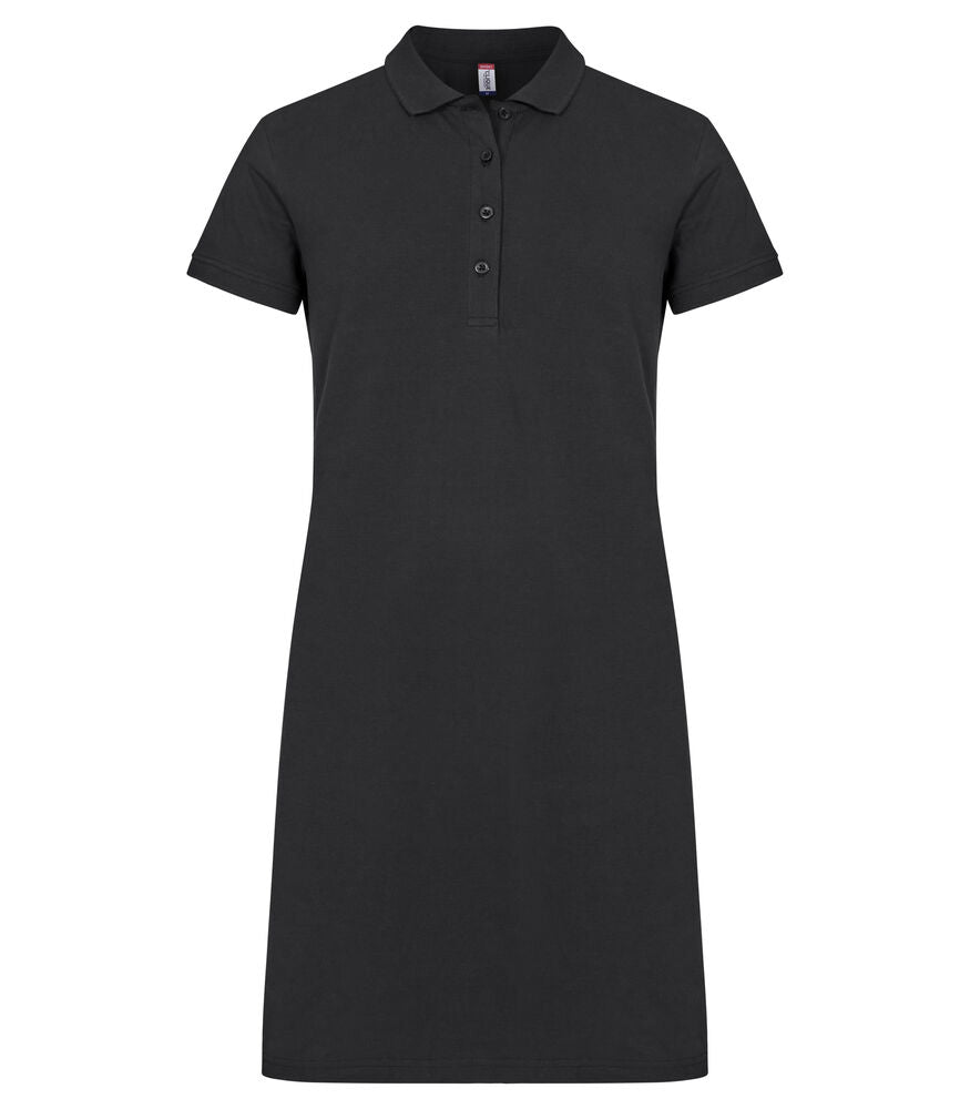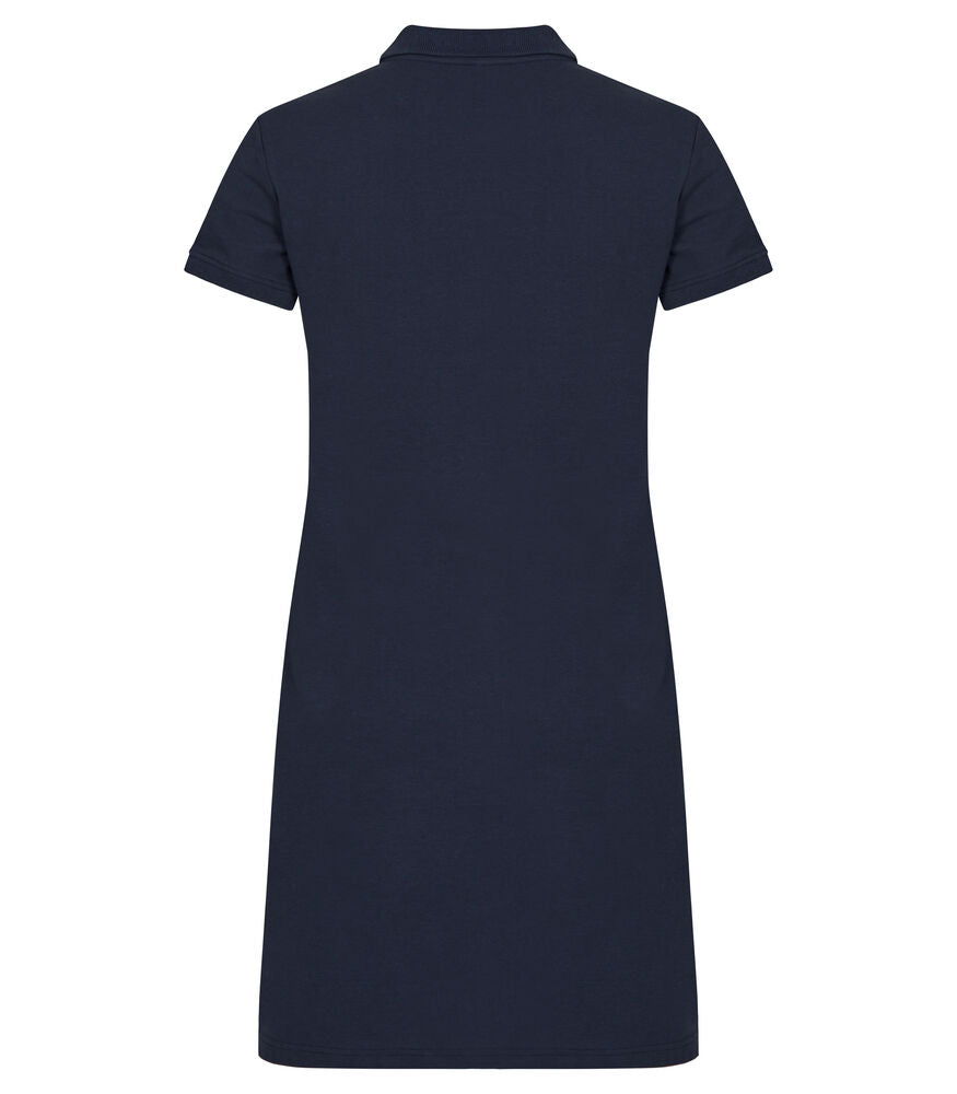 Ein zeitloses Polokleid. Seitenschlitze am Bund, Ton-in-Ton 4-Knopfleiste, verstärktes Nackenband und ein leicht abnehmbares Label für Rebranding.
