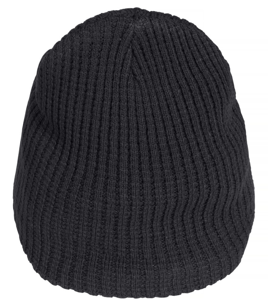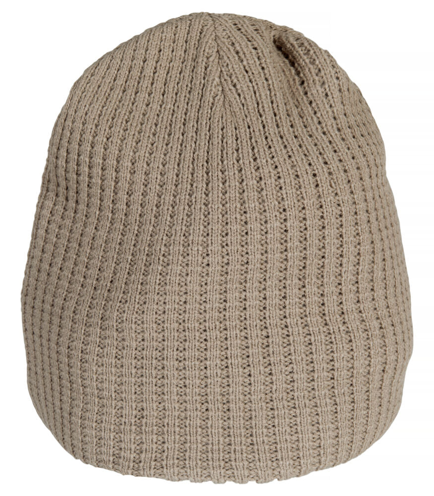 Doppelt strukturierte Strickmütze mit vier Nähten im oberen Bereich.
