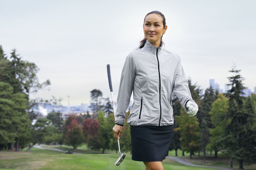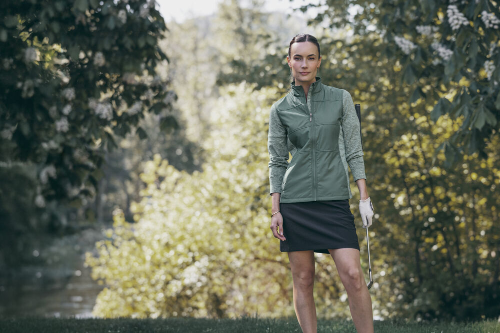 Mit schmeichelnden Linien, feuchtigkeitsableitendem Performance-Material und hervorragenden Stretch-Eigenschaften sorgt dieser Rock für einen bequemen Sitz und ist ein richtiger Hingucker auf dem Golfplatz. Inklusive 50+ UV-Schutz für sonnige Tage. Ein elastischer Bund zum Anziehen und versteckte Reißverschlusstaschen runden dieses Design ab. Ein sehr schönes Teil.