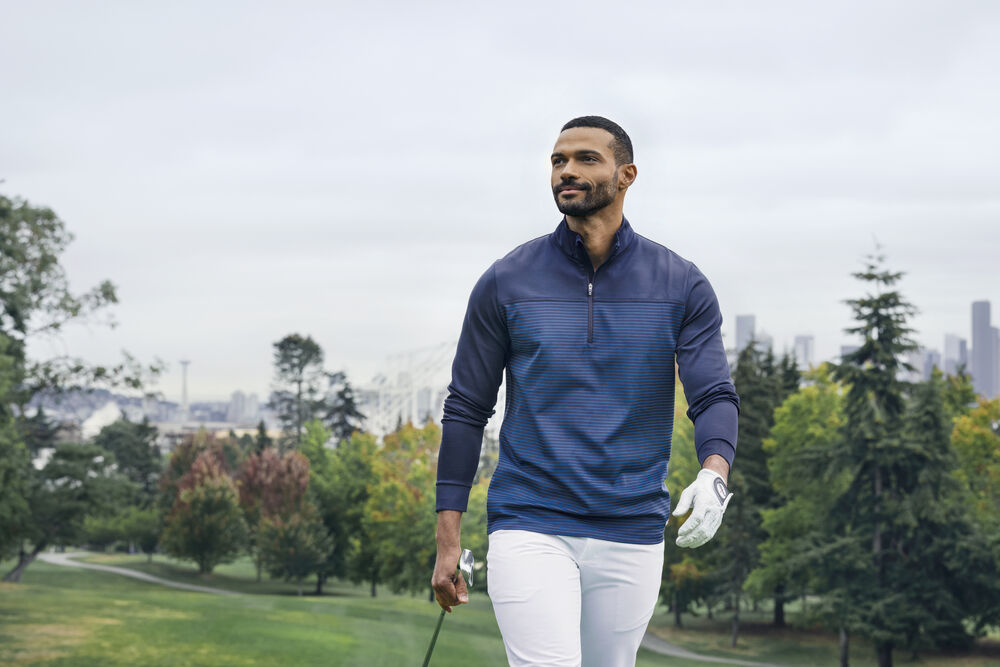 Streifen sorgen für ein stilvolles Flair, aber es ist das CB DryTec 50 + UPF-Material mit seinen feuchtigkeitsableitenden und sonnenschützenden Eigenschaften, das diesen Half Zip zu etwas ganz Besonderem macht. Der Stoff ist weich, dehnbar und atmungsaktiv und verspricht Komfort. Weitere Designmerkmale sind ein Stehkragen zur Temperaturregulierung, Flatlock-Nähte für Komfort und eine reflektierende C & B-Zierleisten für schlechte Sichtbarkeit. Traverse ist schlicht und doch stylisch und der perfekte Midlayer für sportliche Abenteuer. Oder kombinieren Sie diesen mit einer Chinohose für einen lässigen Look.