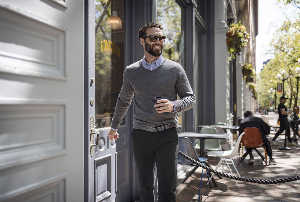Stilvoll und elegant, dieser Pullover ist aus einer hochwertigen Garnmischung aus 50 % Merinowolle und 50 % Acryl gefertigt. Der Vernon-V-Ausschnitt sorgt für einen zeitlosen Look, ideal für den Business-Bereich. Perfekt für das ganze Jahr, tragen Sie Ihn doch einfach über einem unserer Signatur Oxford-Shirts. Moderner einlagiger Rippkragen und verbundene Nähte mit modischen Extras schaffen einen klassischen Look.